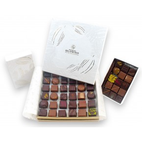 Coffrets et écrins de prestige garnis d'un assortiment de pralinés croustillants et ganaches fondantes.